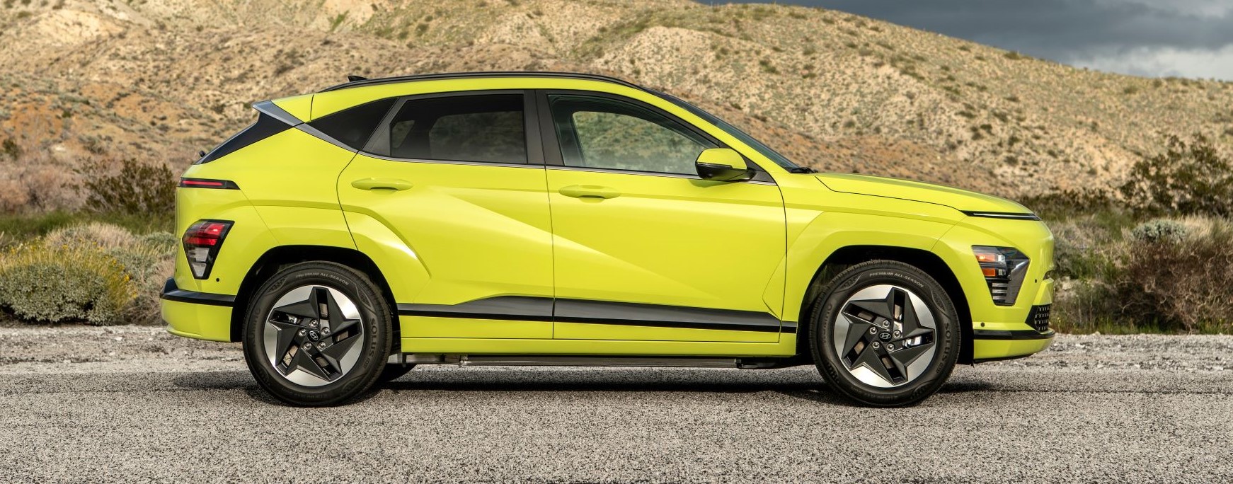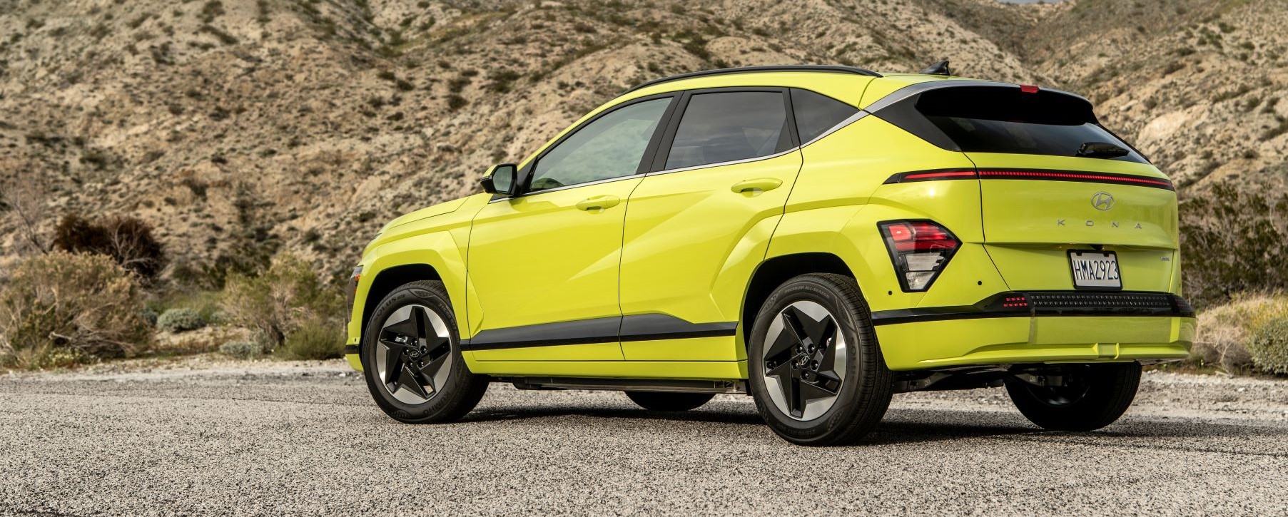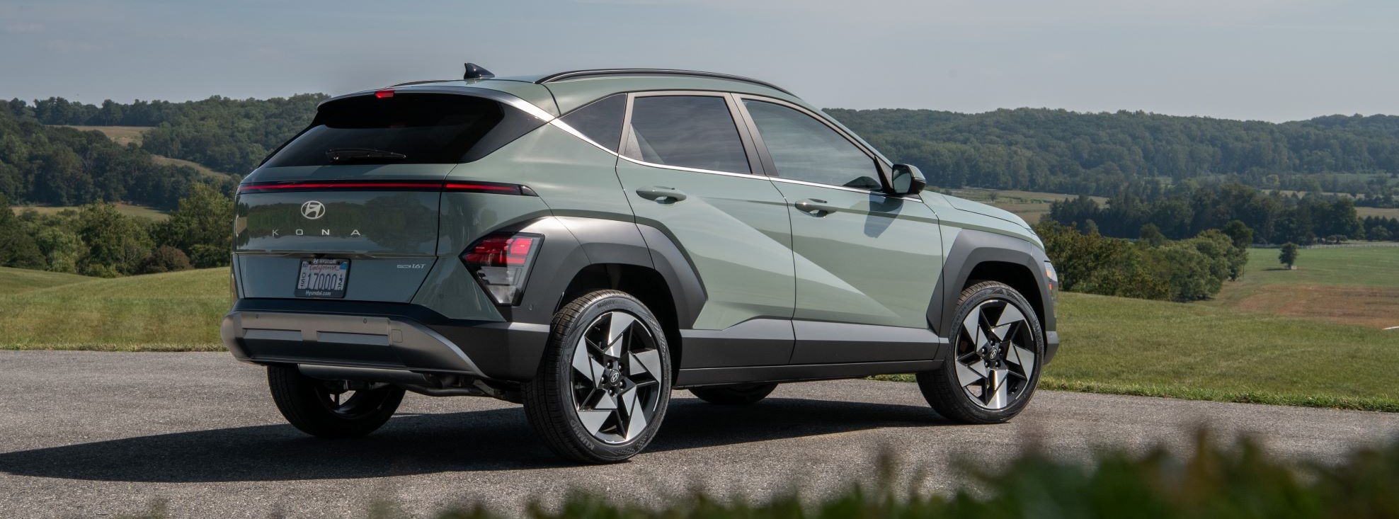 The all-new model has unique proportions providing larger dimensions and interior volume. The Kona internal combustion version length is now 171.3 in., 5.7 in. longer, with a wheelbase of 104.7 in., a 2.3 in. increase, and its overall width is 71.9 in., a full inch wider than its predecessor.