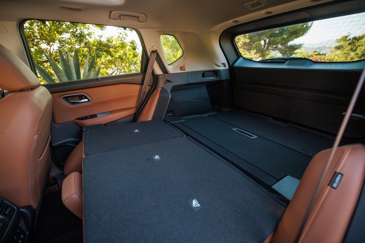 The second row of seats has a 60/40 split-fold and recline function, allowing owners to optimize for passenger or cargo space as needed. Up to 36.5 cubic feet of cargo space behind the second row accommodates luggage and belongings, with space expanding to as much as 74.1 cubic feet with the second row folded10. Access to the cargo area is simplified thanks to the available power liftgate (standard, SV and higher), with a motion-activated power liftgate optional on SL and Platinum grades.
