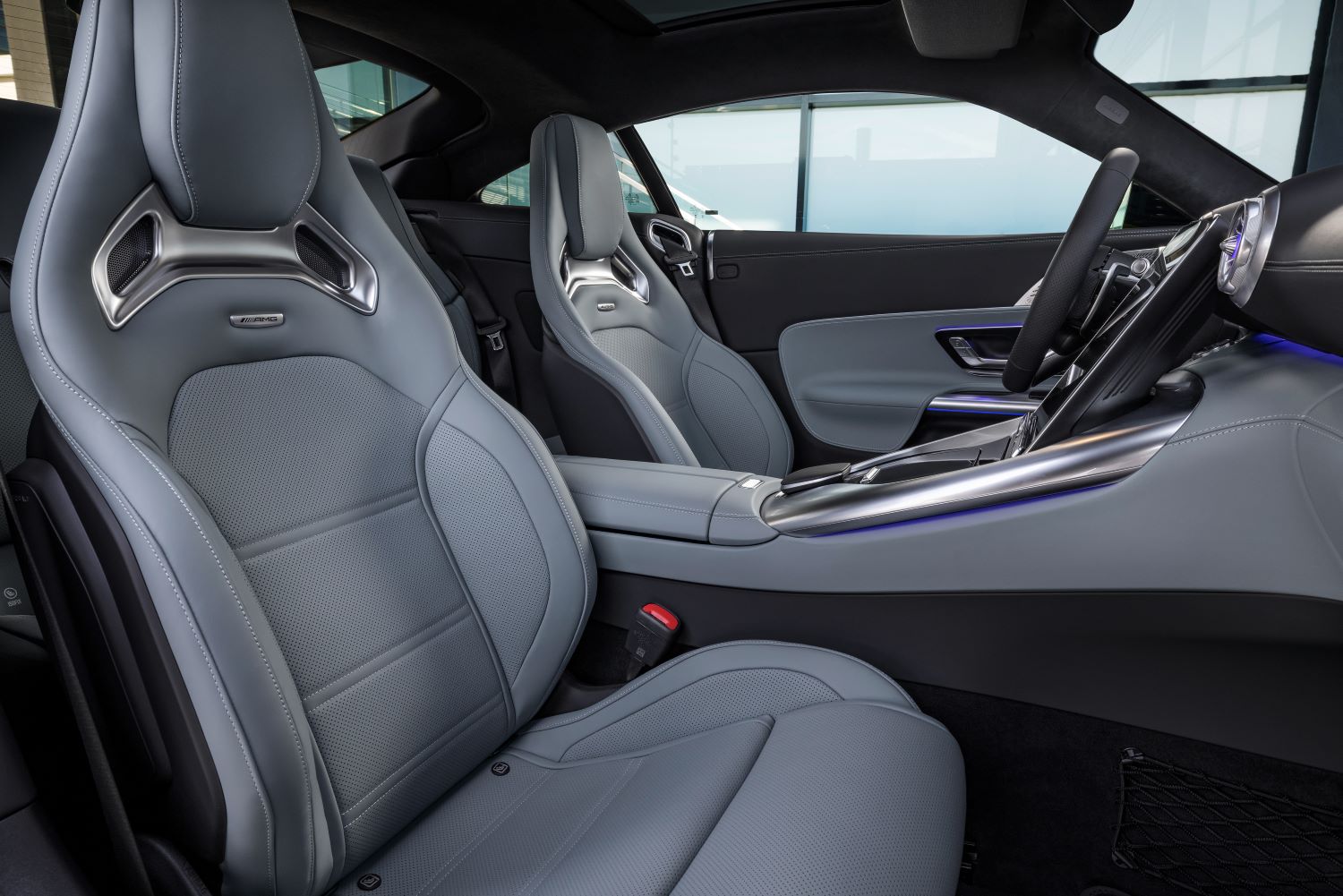 The AMG GT 43 is equipped as standard with AMG sports seats in Nappa leather. The same applies to the optional AMG performance seats with integrated headrests and increased lateral support.
