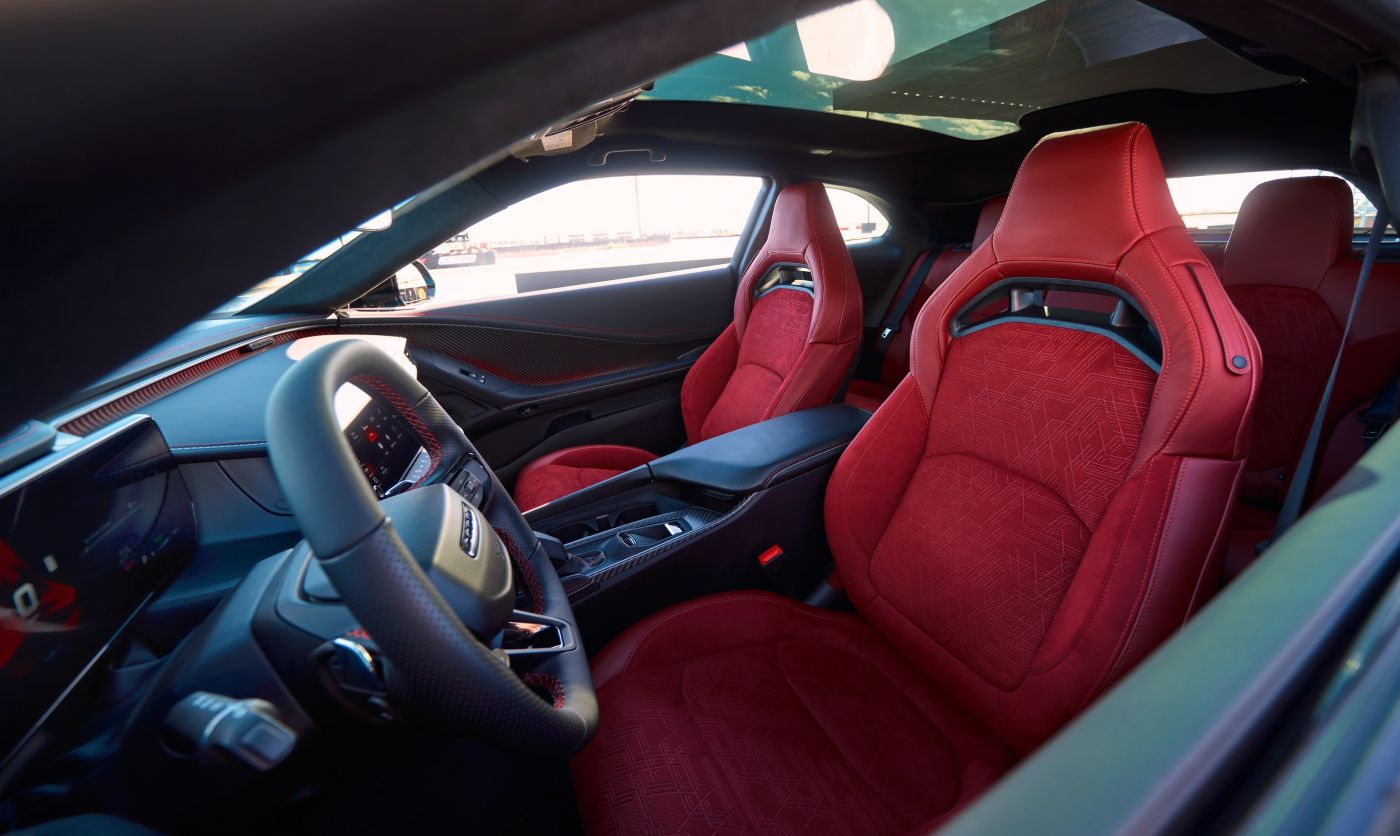 - Premium seat options include heated Black Nappa leather and Demonic Red Nappa leather seats; high-backed fixed headrest seats embellished with a unique pass-through are available on Plus trims