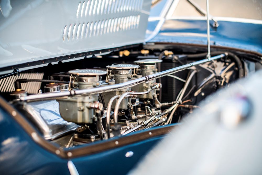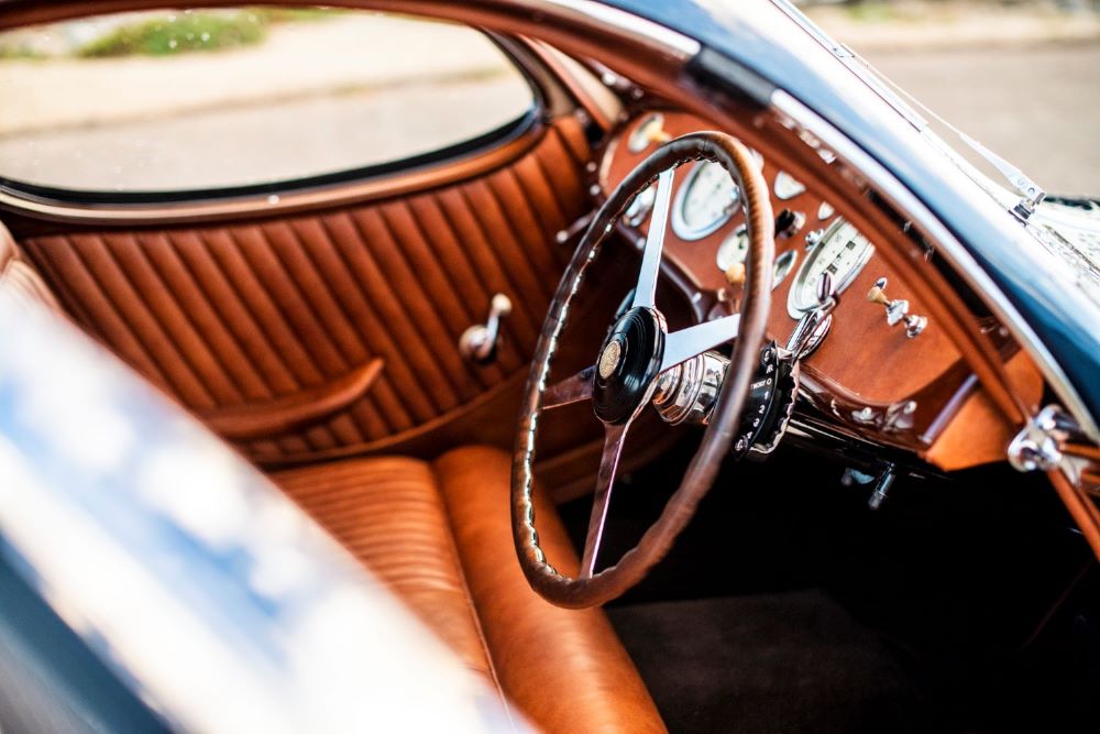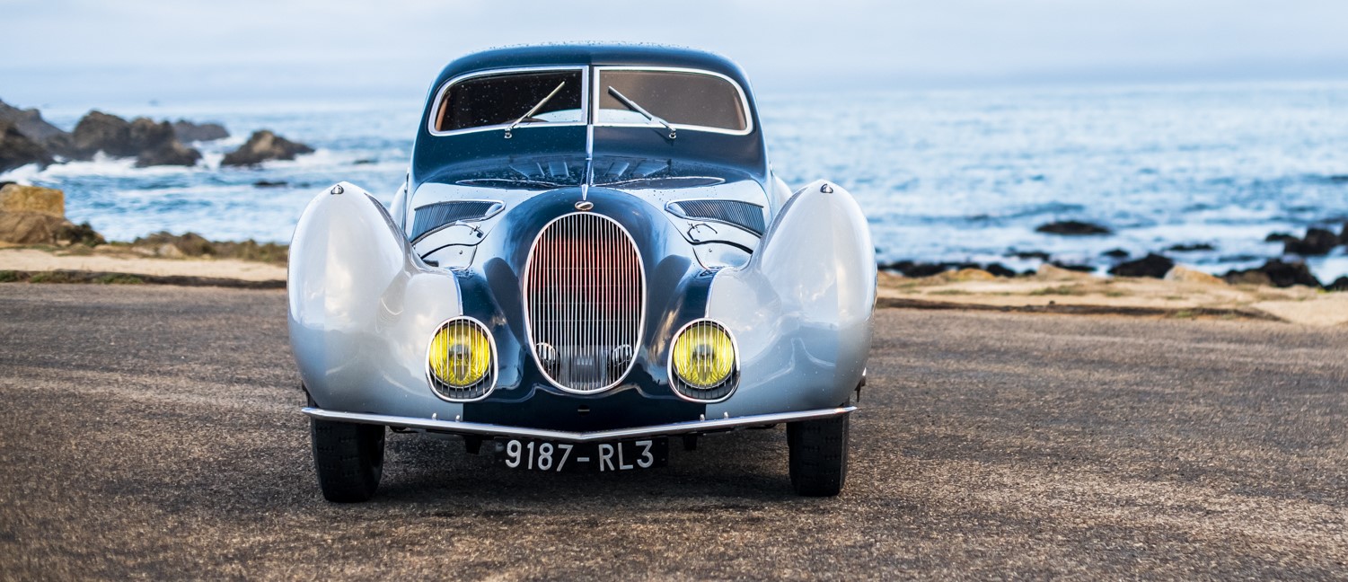 The ‘New York’ model Teardrop Talbot-Lago – so named because this design was revealed at the New York Auto Salon in 1938, after two earlier iterations – flows perfectly, one coherent design from front to back. It was the brainchild of Lago, influenced by the kinetic art of Geo Ham, and has been revered since its introduction as one of the most elegant car designs of all time. The fourth of fourteen built, of which all but one survive, this car was the only example not to have been fitted with a sunroof, instead for cabin ventilation the twin windscreens open outwards on compact dash operated ratchet winders.