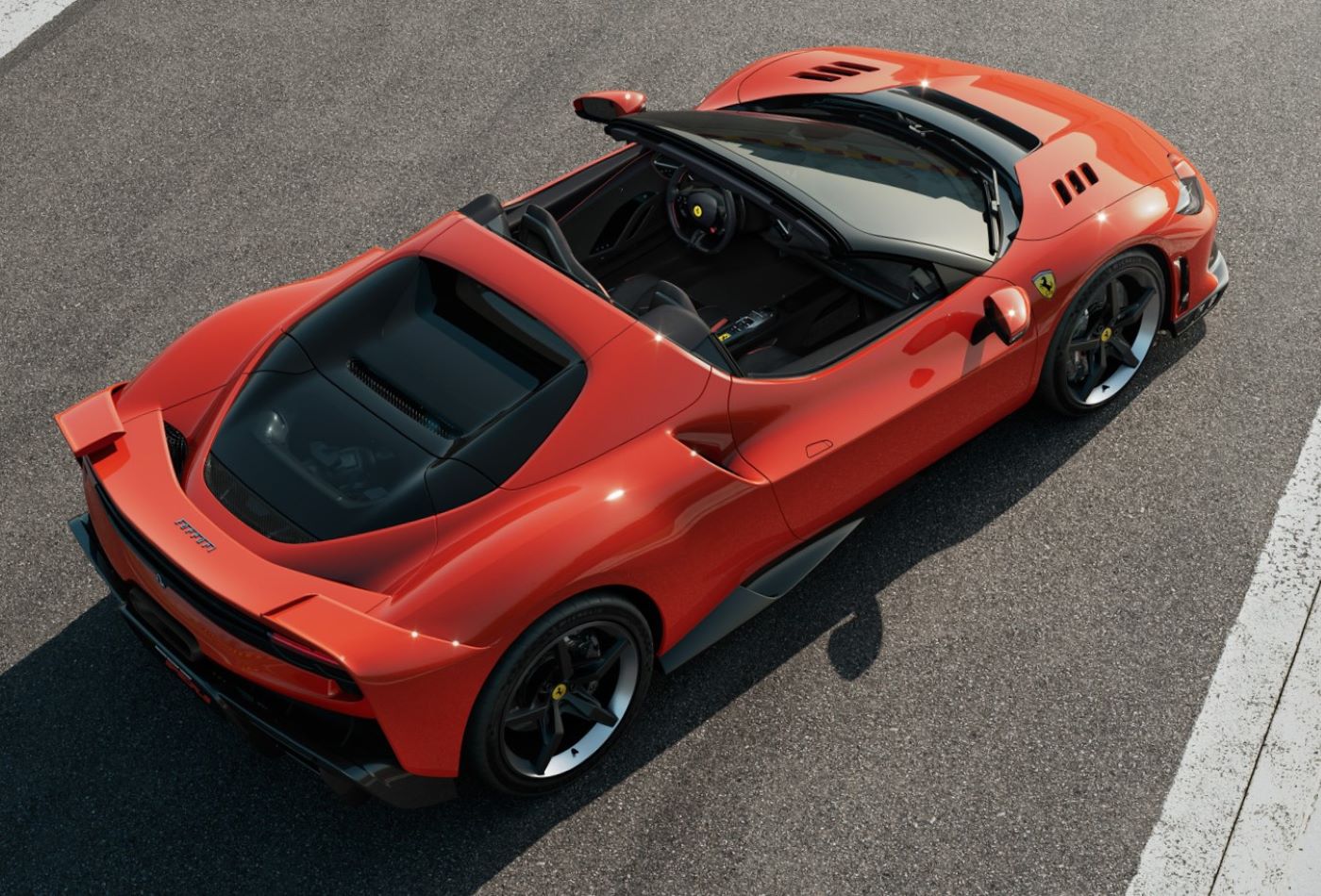 The 296 Speciale A is characterised by the clean and refined lines of the 296 Speciale. With the top open, it represents an even more exclusive version of the concept of an open-air berlinetta. Preserving the main features of the 296 Speciale required an intense phase of technical analysis, with the aim of minimising the impact of exterior modifications.