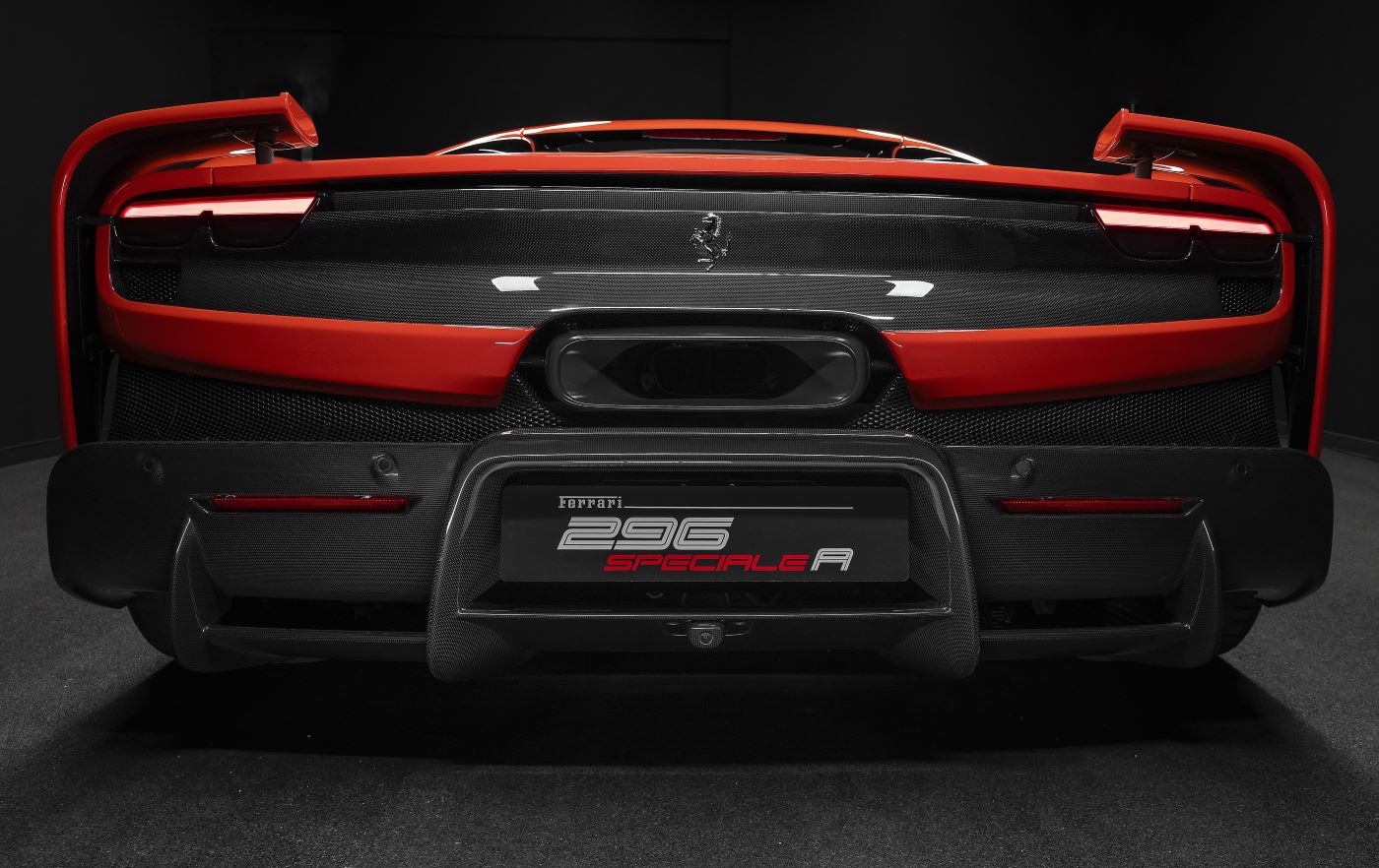 The 296 Speciale A has a retractable spoiler which completes the aerodynamic profile of the tail of the car. The control strategy is capable of setting the wing into a number of different wing positions: Low Drag (LD), with the wing fully retracted; an intermediate position, which partially deploys the wing so that it is ready to transition into the High Downforce (HD) configuration more rapidly, while still remaining flush to the profile of the bumper; the Medium Downforce (MD) position, which is used solely at high speed to increase the stability of the rear end without penalising top speed, and the High Downforce (HD) position, which is employed in the case of high lateral acceleration or under hard braking to maximise rear downforce and further increase the stability of the car.