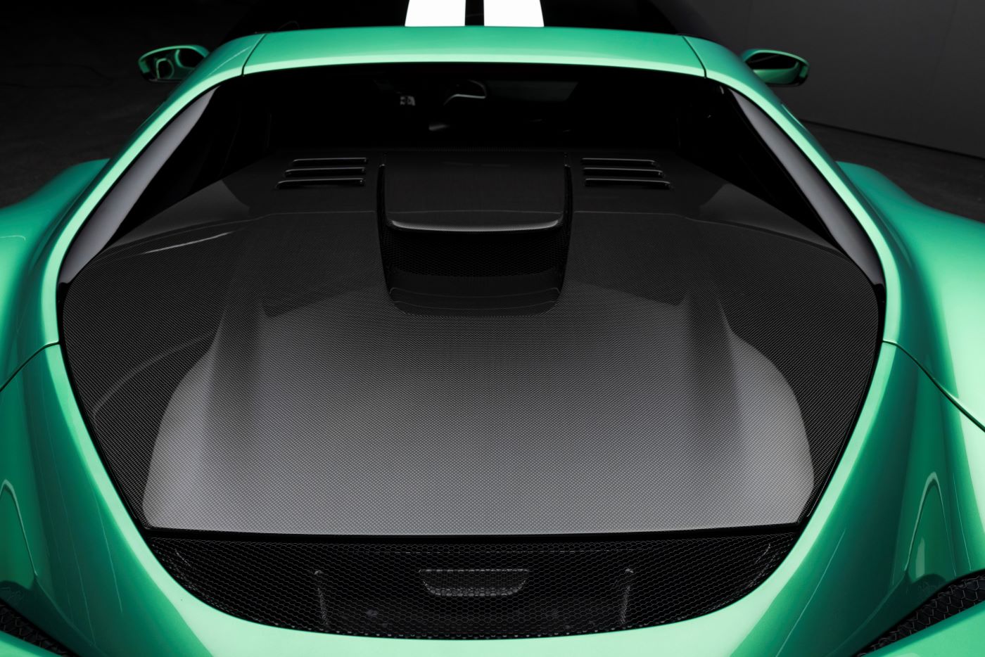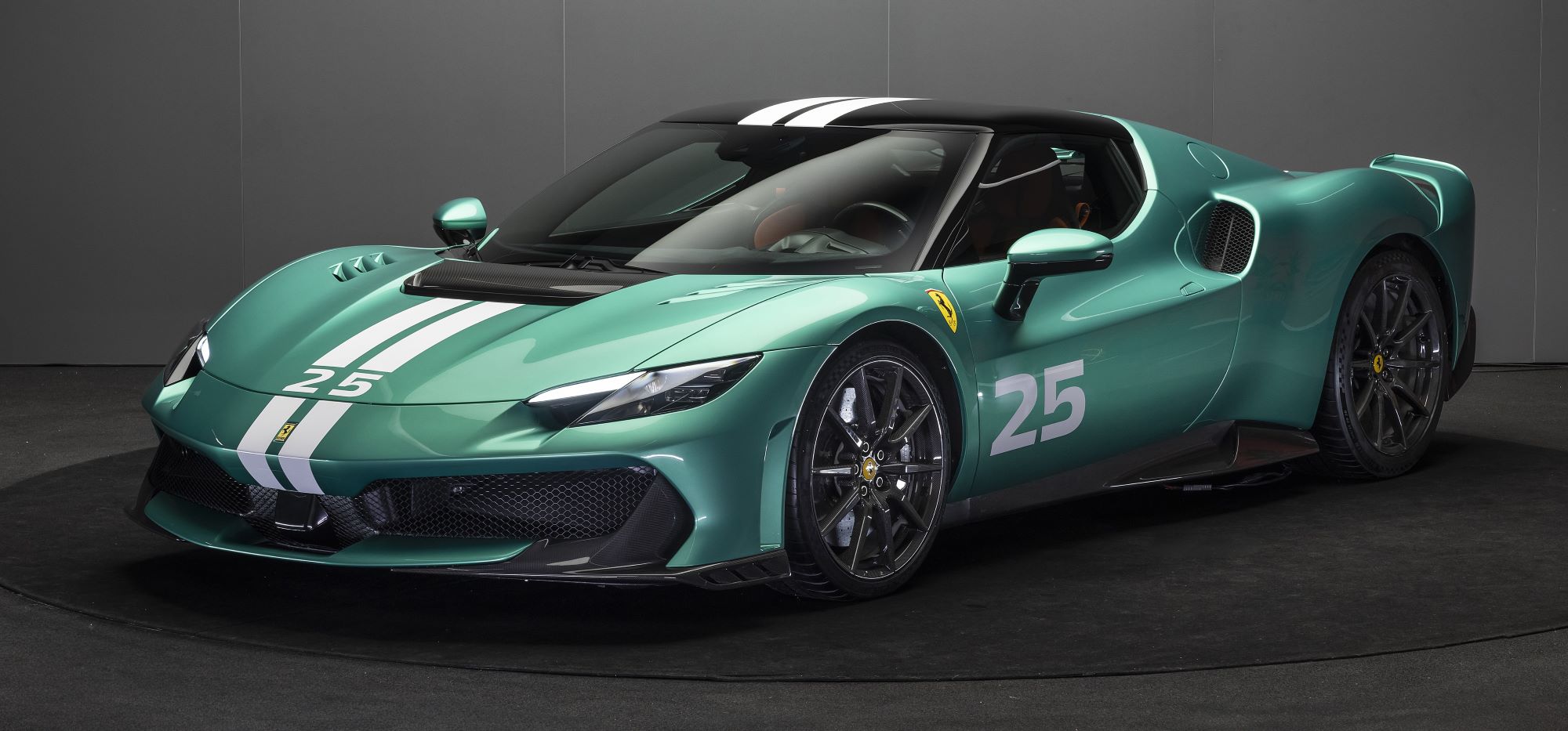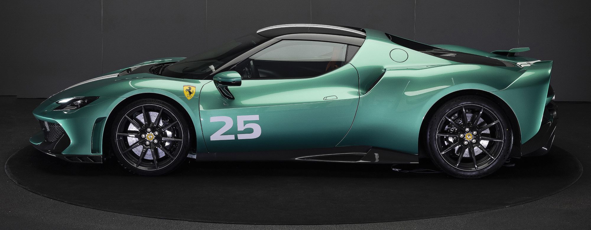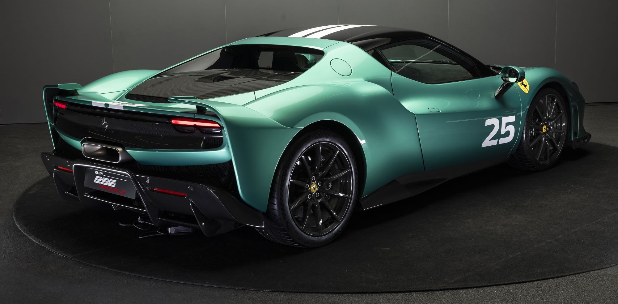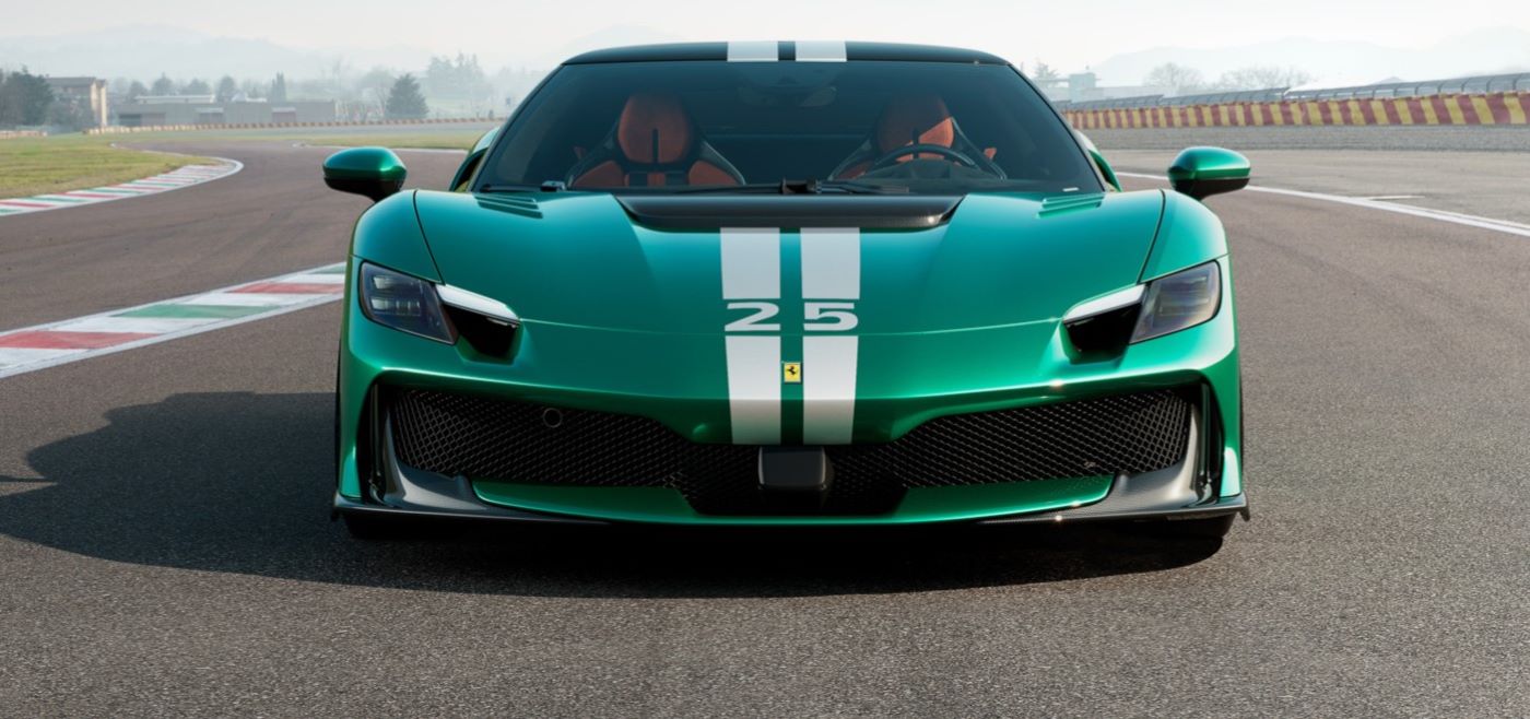 The new Verde Nürburgring exterior colour developed specifically for the 296 Speciale is a very vivid green which emphasises the sporting spirit of the car. The new livery, which is now also offered for the first time ever in a white variant, consists of one or two longitudinal stripes extending over the entire length of the car. Customers can also complement the livery with a number of their choice from 00 to 99.