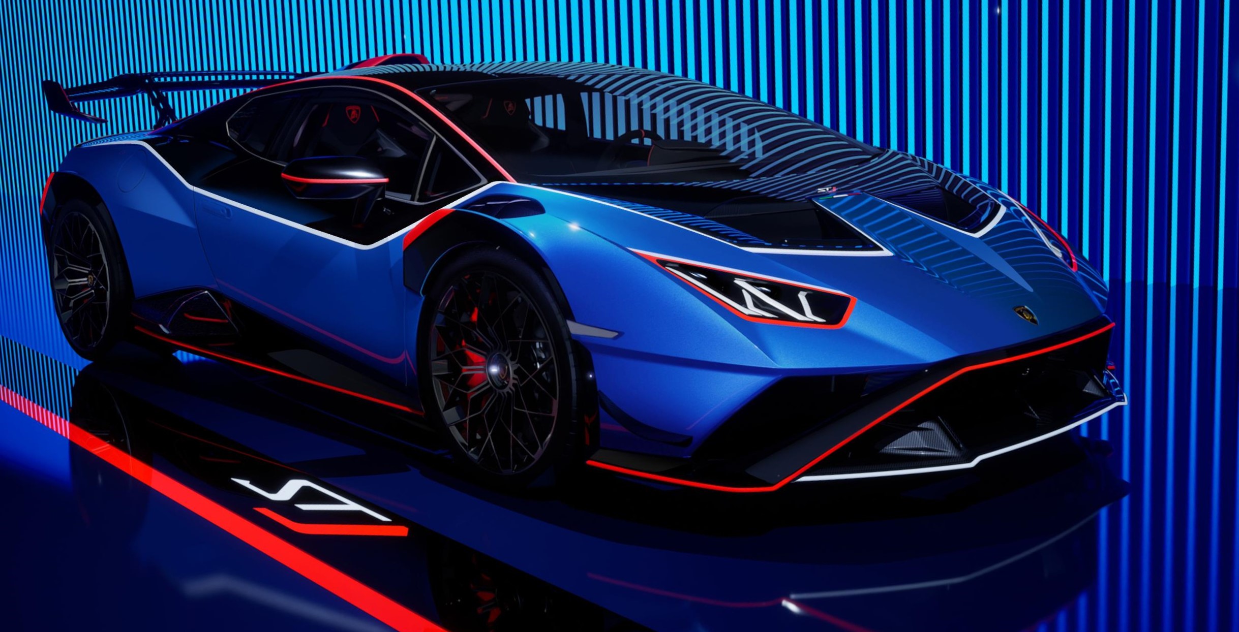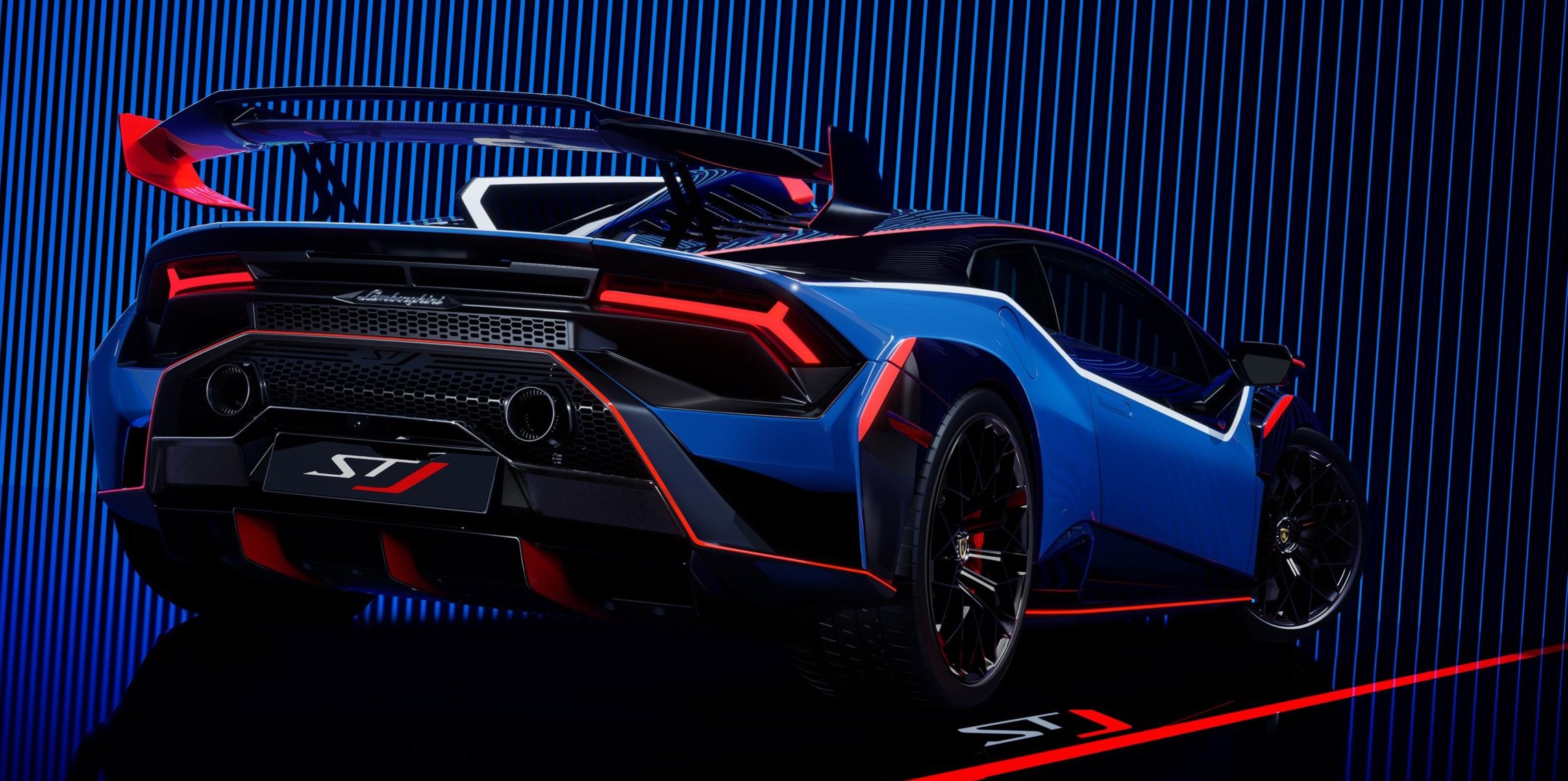 The Huracán STJ stands out thanks to its dedicated aerodynamic package developed by Lamborghini Squadra Corse technicians, leveraging the know-how acquired over ten years at the top of Gran Turismo competitions. The sophisticated aerodynamics of the STO have been further improved with the addition of the iconic “cofango”: two all-new carbon fiber aerodynamic appendages (flicks), while the angle of the rear wing has been increased by 3° compared with the production model to ensure a 10% increase in aerodynamic load while keeping the car perfectly balanced.