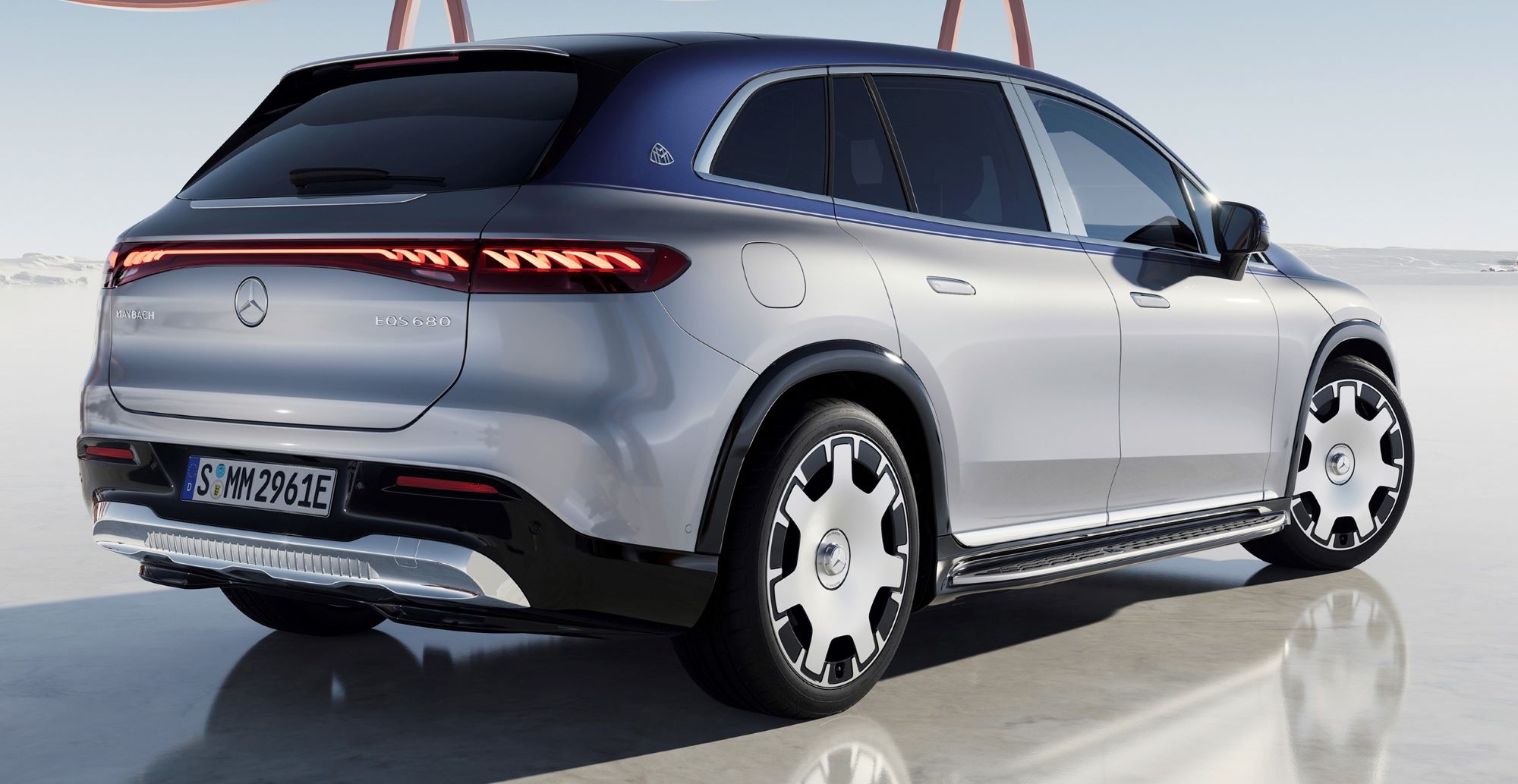 The special appearance of the Mercedes-Maybach EQS SUV also includes the brand-exclusive two-tone paintwork with an ornamental pinstripe. It is applied by hand according to the highest quality criteria and is available in five color combinations: Cirrus Silver/Obsidian Black, Cirrus Silver/Nautical Blue, Obsidian Black/Selenite Grey, Obsidian Black/MANUFAKTUR Kalahari Gold and Sonoran Brown/Onyx Black.