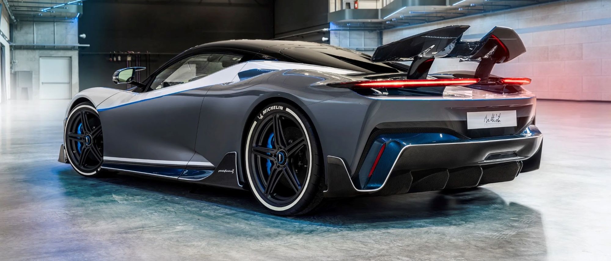 The intelligent deployable rear wing extends automatically at high speeds and can generate up to 250kg of downforce. It also operates as an aerobrake when slowing from high speeds, helping to stabilise the vehicle and support the traditional friction, and advanced regenerative, braking systems. - … Automobili Pininfarina has more than nine decades of design heritage?