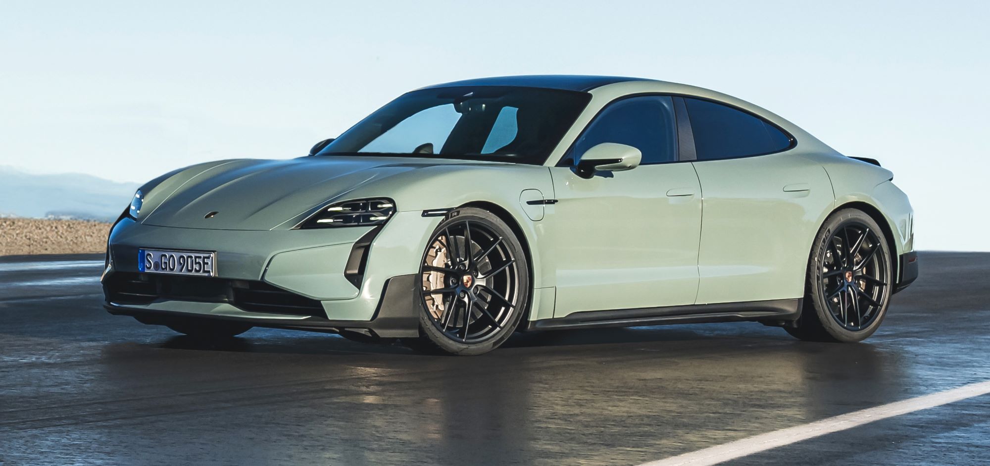 The Taycan Turbo GT is equipped as standard with special performance summer tires mounted on 21-inch lightweight forged wheels and Porsche Active Ride suspension, with Turbo GT-specific tuning. In dynamic driving situations, this suspension offers an optimal connection to the road thanks to a balanced distribution of wheel loads. In addition, the exclusive Turbo GT wheels have relief-milled spokes, which saves weight and at the same time effectively ventilates the brakes.