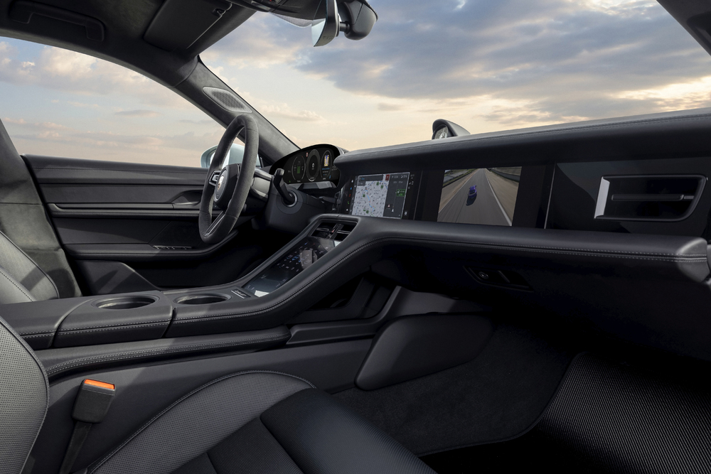 On the GT Sport steering wheel, the rim is covered with black Race-Tex and has a 12 o’clock marking. The Taycan Turbo GT features the Sport Chrono package from the Taycan Turbo S.