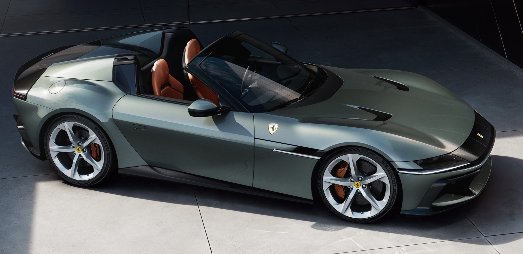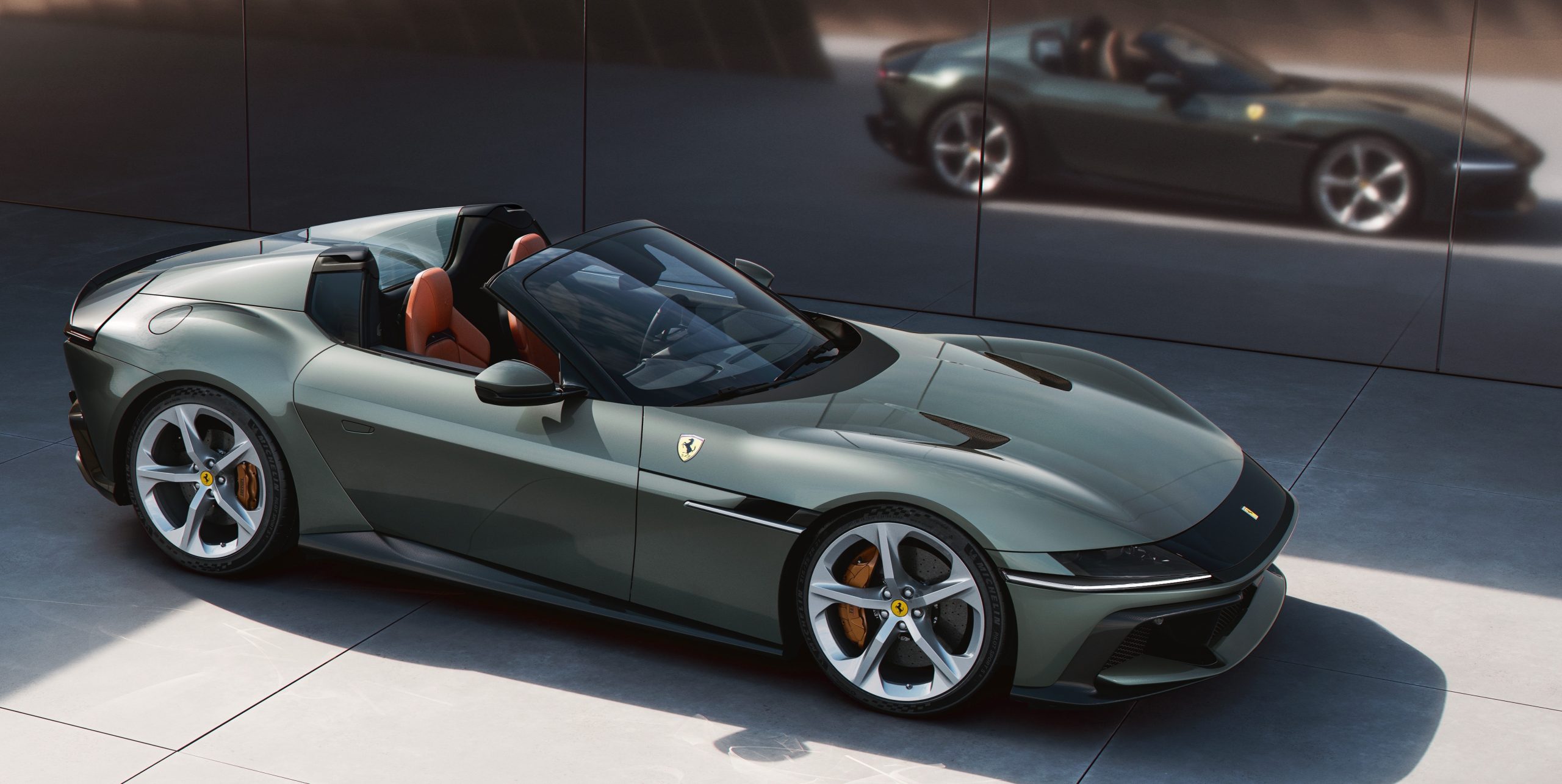 - The Ferrari 12Cilindri Spider two-seater spider with a mid-front-mounted- naturally-aspirated V12 engine that combines an unparalleled, thrilling driving experience with sophisticated, modern design, and has been conceived for aficionados of this very special engine configuration who also enjoy the appeal of open-air motoring delivering 830 cv, the twelve cylinder naturally-aspirated engine offers a unique and sensational driving experience