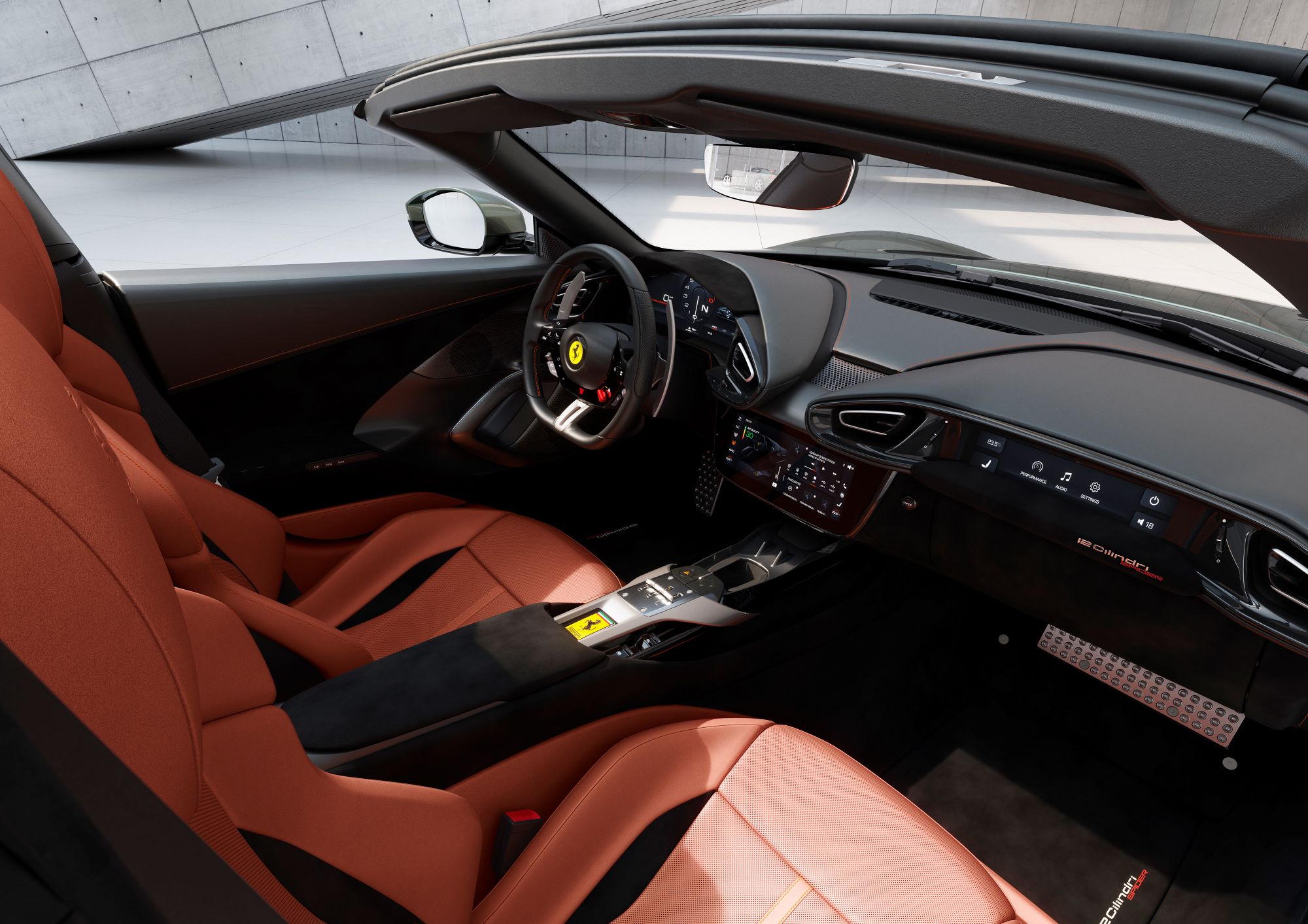 The interior style takes its inspiration from the Prancing Horse’s dual-cockpit architecture. In recent years, that layout was used for the Ferrari Roma and Roma Spider as well as the Ferrari Purosangue. The Ferrari 12Cilindri Spider’s cabin has an almost symmetrical structure comprising two modules for driver and passenger and offering an astonishing standard of comfort and involvement in the driving experience.