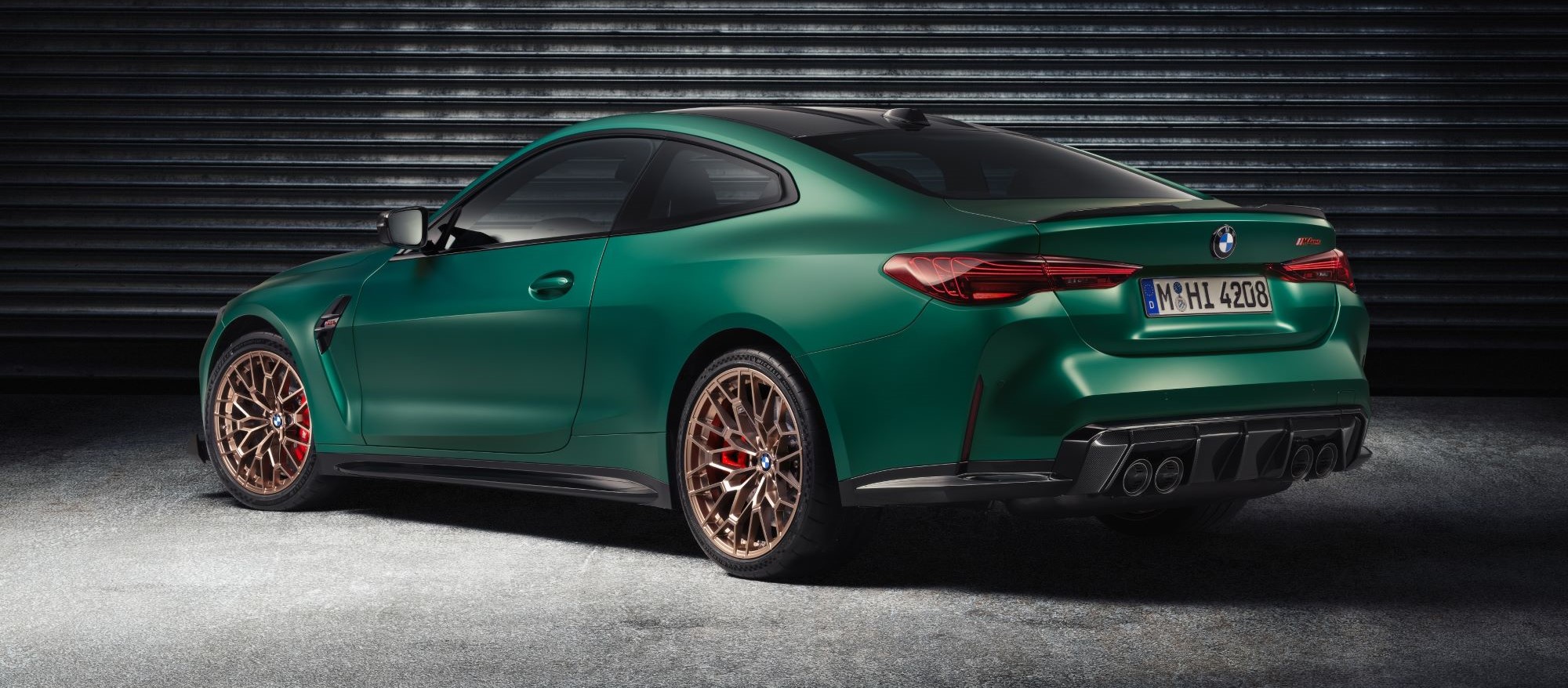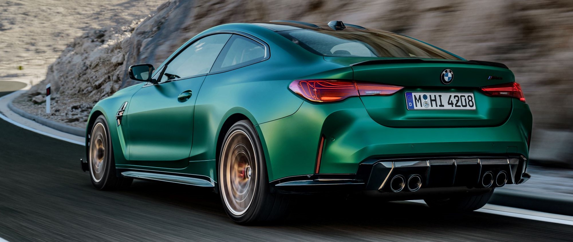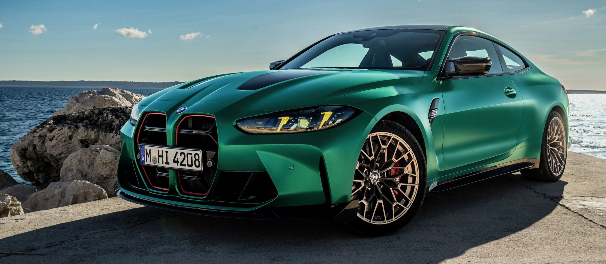 At launch, the new M4 CS will be available in two BMW Individual paint finishes: Riviera Blue and Frozen Isle of Man Green metallic. Exposed carbon fiber surfaces on the roof and within the two channels running the length of the hood showcase the material’s distinctive structure, as do the front splitter, front air intakes, M exterior mirror caps, rear spoiler, and rear apron. Together with the Black side skirts and M gills, the CFRP elements provide a bold contrast against the new paint finishes. The new BMW M4 CS can also be ordered in Brooklyn Grey metallic or Black Sapphire metallic.