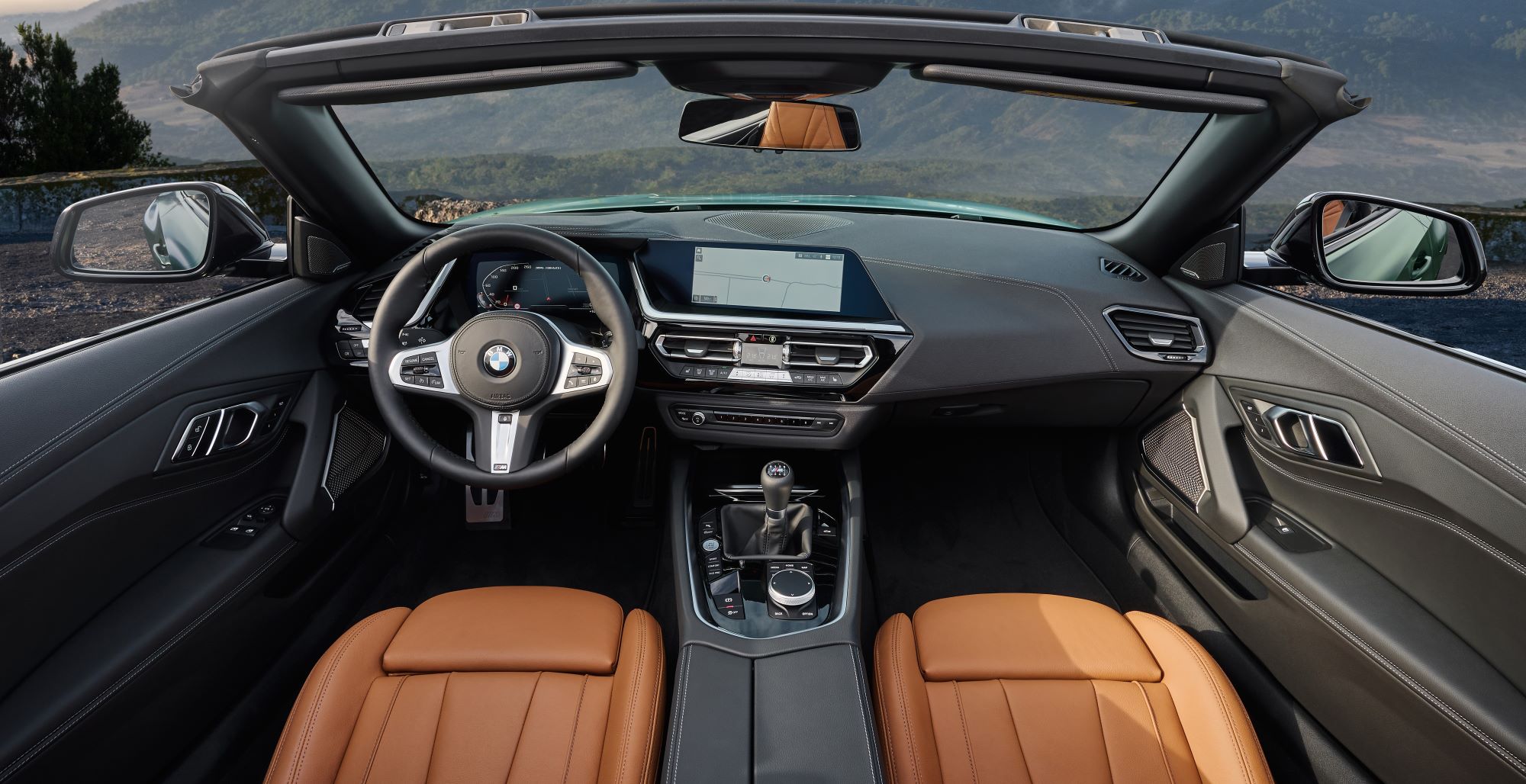 The design of the BMW Z4 interior is defined by a driver-focused cockpit layout, sport seats with integral head restraints, clear, forward-facing lines, and minimal decorative surfaces. With the addition of the M Sport Package as standard, the interior of the BMW Z4 sDrive30i now includes an M leather steering wheel, M Sport seats, M pedals, an M driver’s footrest, and a dashboard upholstered in SensaTec.