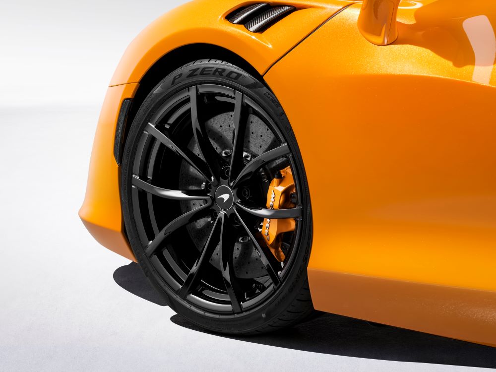 The MY25 Artura has a new 15-spoke wheel as standard, in silver finish. A new gold-coloured Orum wheel finish is available on both Dynamo and Star wheel designs, with the latter now available in a full range of finishes. The Calibre 10-Spoke Super-Lightweight wheel joins the list of optional wheels, and is available finished in Silver, Dark Stealth or Gloss Black. All wheels can be optionally specified with Titanium Wheel Bolts, saving approximately 0.4kg of unsprung mass – indicative of the level of attention given to delivering weight reduction.